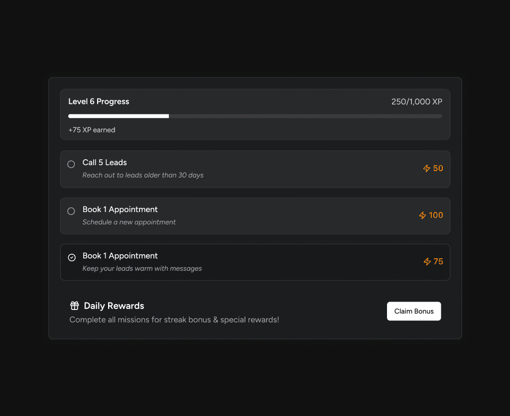 Gamified Performance. Boosts productivity with XP, streaks, leaderboards, and incentives.